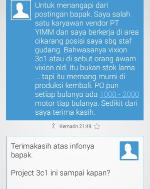 Sob,kemarin malam sekitar pulul 10 malam RSL mendapat SMS yang kemungkinan besar membaca salah satu postingan yang pernah RSL tulis beberapa bulan yang lalu pasca dijualnya kembali old vixion di seluruh jaringan diler yamaha.