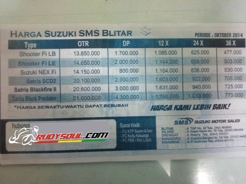 Sob,maaf yang punya warung lagi M (males) nulis,ya sudah kali ini cuma bisa share informasi harga Satria FU di Blitar.