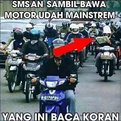 Tapi mosok iya nyetir motor sambil baca koran?padahal kondisinya (digambar) lagi rame loh,atau itu gambar editan ya?