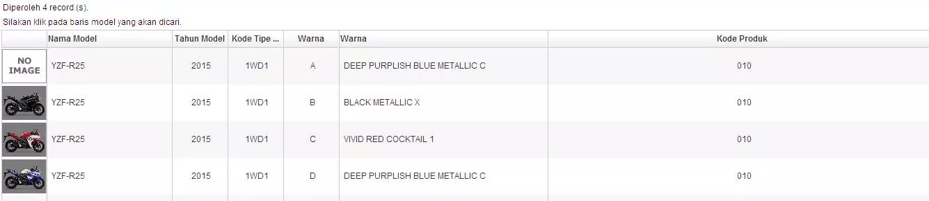 Tapi sayangnya untuk item tersebut tidak ada gambar yang namapk,seperti pada kolom gambar YZF-R25 lainya.