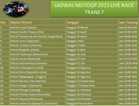 JADWAL MOTOGP on air 2015
