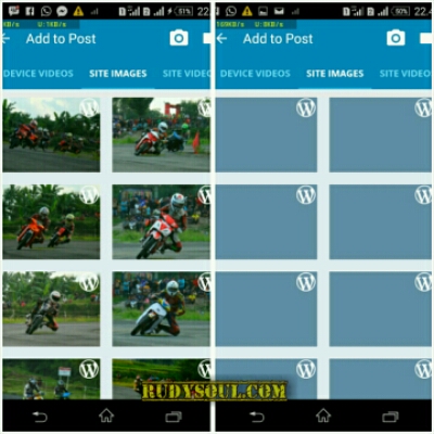Sayang…setelah aplikasi wordpress for android teruodate rudysoul kesulitan saat memasukkan gambar yang sebelumnya sudah teropload di media,karena aplikasi akan loading untuk menampilkan media gambar yang sudah ada di gallery aplikasi.