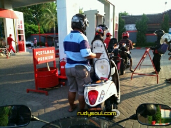 Antri menunggu 2 kendaraan yang ada di depan,kembali RudySouL mencoba untuk melihat papan harga yang ada depan SPBU tapi tidak terlihat.