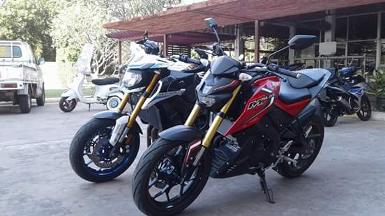 Lihat tuh…M-Slaz yang dijejerin sama MT-09 enggak kalah keren loh 🙂