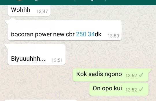 Entah ada apa…ujug-ujug dia bilang “bocora power new cbr 250 34dk.