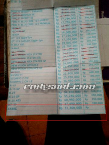 Untuk mengetahui harga Xabre 150 di daerah tempat RudySouL berdomisili yaitu Blitar,akhirnya mencoba untuk menanyakan harga Xabre 150 via BBM ke salah satu sales yamaha di Blitar.