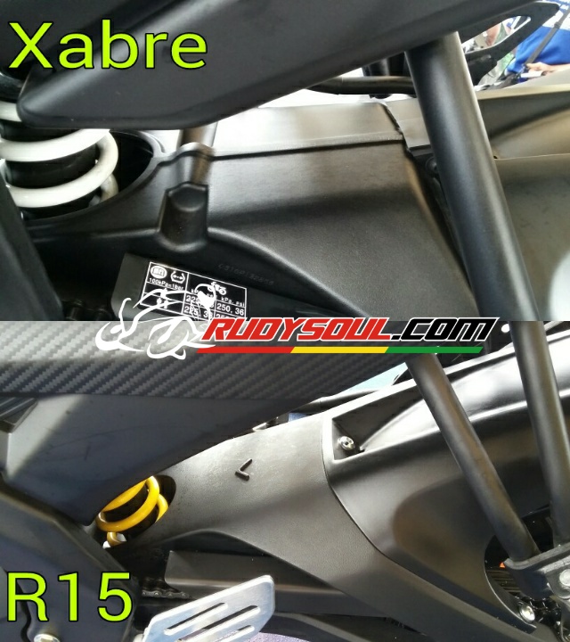 Sob,jika melihat secara sekilas beberapa part Xabre 150 dan R15 itu sama,alias part yang dipasang di Xabre 150 itu sama persis dengan part yang dipasang di R15.