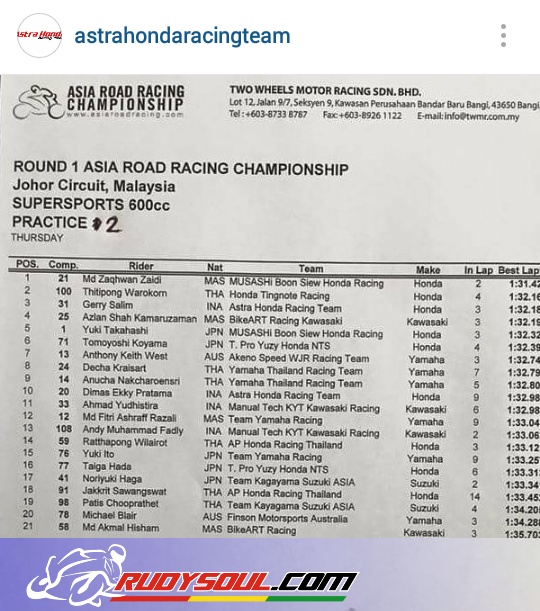 Gerry Salim pembalap Astra Honda Racing berhasil menjadi pembalap tercepat ke3 di practice ke2 AARC Johor Malaysia.