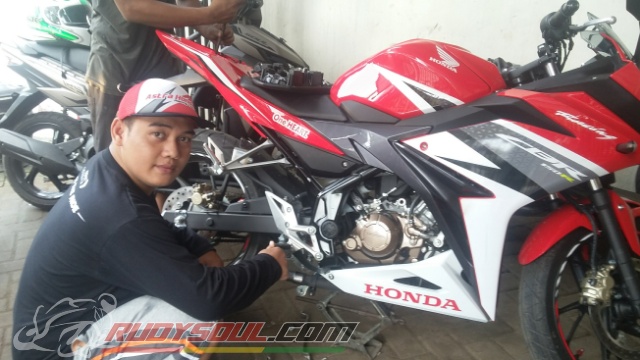 Lepas spakbor belakang dan turunin shock depan All New CBR150R.
