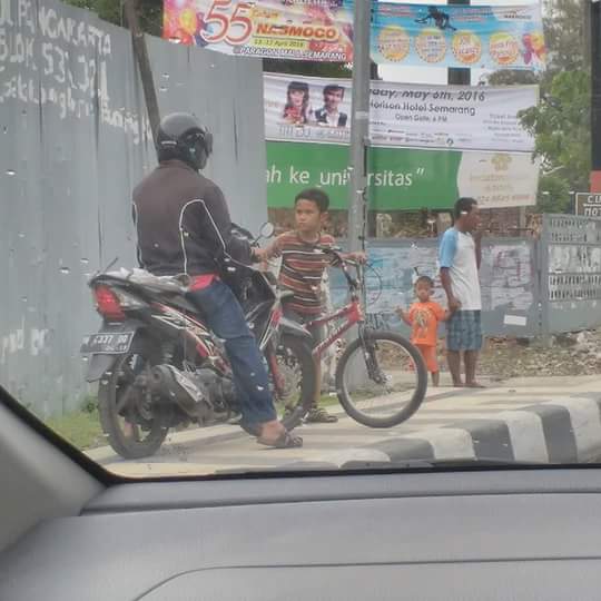 Dia berantem sama bapak2 pengendara motor yang naik ke trotoar pada saat macet terjadi di jalan sudirman kalibanteng SMG..si anak tetap ga mau kasih jalan buat motor dan setelah ribut2 kecil si pengendara motor akhirnya mundur..