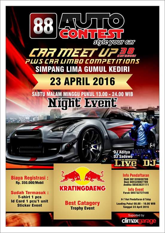 Spesial diseri3 balapan yang digelar di Simpang Lima Gumul Kediri berlangsung malam hari (night race) dimulai pukul 14:00 sampai selesai,speaial pake banget nih…karena selain road race penonton bakal disuguhkan berbagai hiburan,diantaranya Modifikasi Motor branding Kratingdaeng, Foto Contest, 3 on 3 Basket dan Car Meed up,semua dikemas menjadi satu demi memanjakan para penonton.