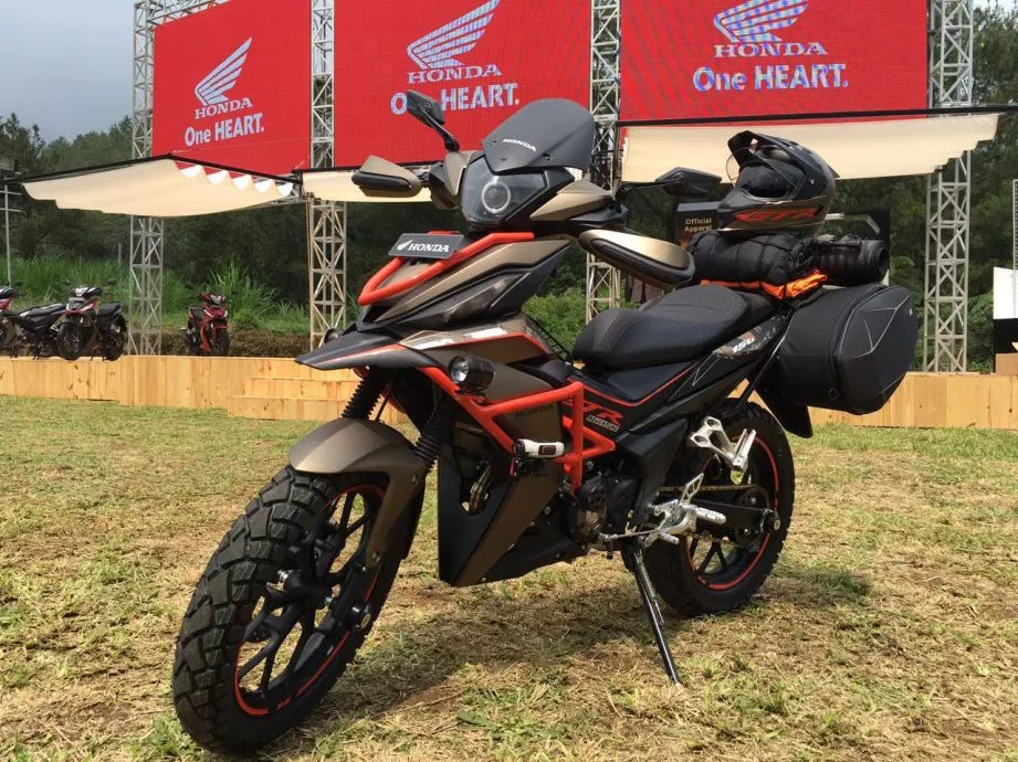 Saat acara launching terlihat beberala Supra GTR150 dimodifikasi ala motor adventure,apakah honda memposisikan SuPra GTR dengan target anak muda yang suka turing ya sob?