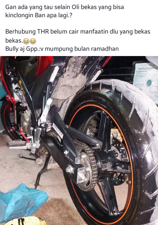 Ada-ada saja,oli bekas buat kinclongin ban motor.