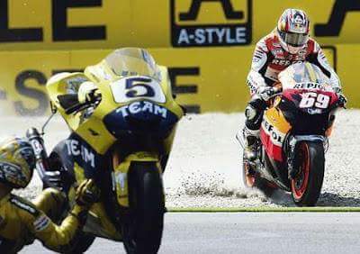 Nih cuplikan video antara Rossi vs Marquez tahun 2015.