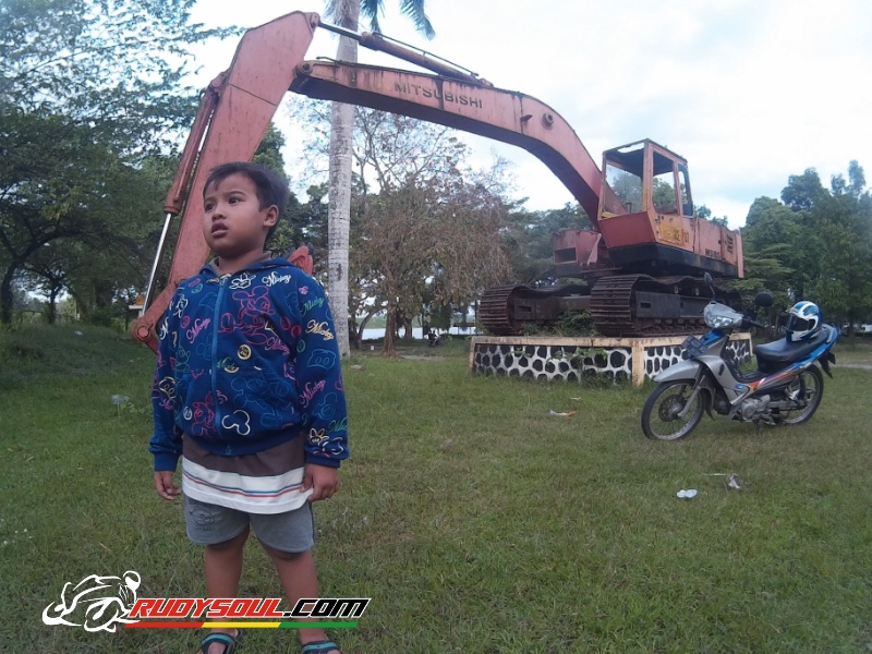 Tadi sore jagoan kecil rewel minta diantar melihat mesin berat yang ada bendungan PLTA yang ada desa sebelah.