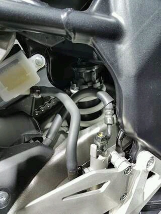 Dari beberapa jepretan Om Benny ada satu yang bikin penasaran,yaitu model tangki BBMnya yang bentuknya memiliki lekukan-lekukan yang senada dengan keseluran body motor,nahh apakah tangki BBM CBR250RR ini menggunakan sistem kondom seperti R25?