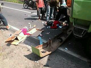 Sob,seorang ibu dan anaknya yang berumur 3 tahun meninggal dunia setela kendaraan yang dikendarainya menghantam truk dari lawan arah di Jl Raya Talun Blitar.