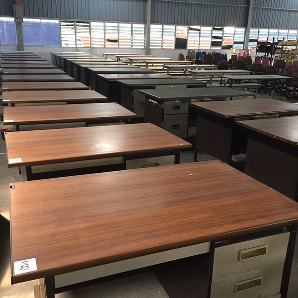 Semuanya dilelang mulai dari meja,kursi kantor dan robot perakitan semuanya dilelang,sampek resik tenan iki barange