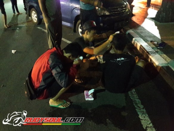 Seketika orang-orang yang berada dilokasi datang menolong dan membawa korban kepinggir jalan.