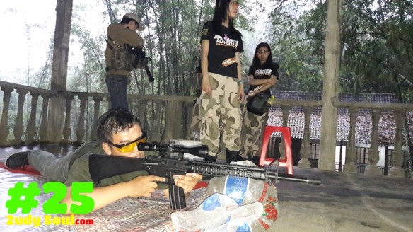 Team yang sudah terbentuk (total 3team) selanjutnya dibimbing instruktur untuk latihan tembak menggunakan ASG,peserta diberikan materi dan selanjutnya langsung praktek menggunakan ASG baik yang otomatis dan kokang.ada 2 kategori latihan dihari pertama ini yaitu Race Gun dan Shoot gun.