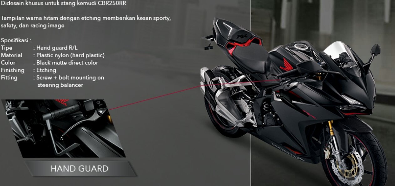 Atau klik gambar berikut untuk melihat apparet CBR250RR secara lengkap.