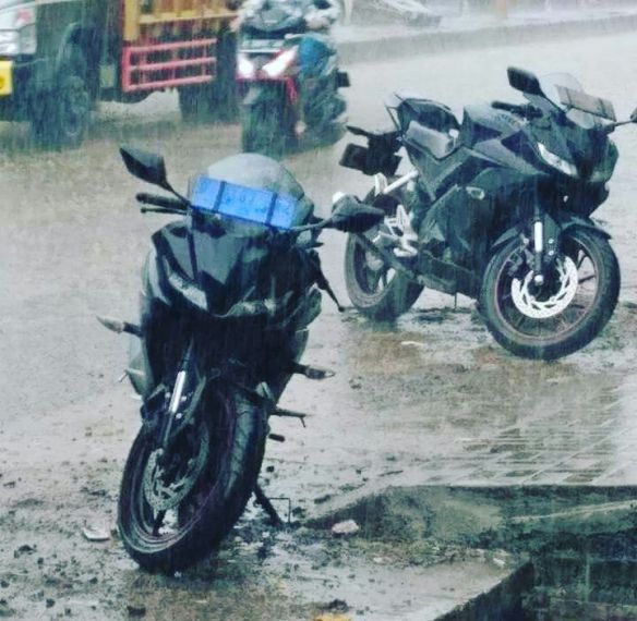 Sob,kembali  gambar r15 versi 2017 terjepret kamera saat sedang ditinggal ridernya berteduh karena hujan turun cukup lebat, terlihat R15 V3 masih seperti Spy shot sebelumnya dengan wujud headlamp yang sipit.