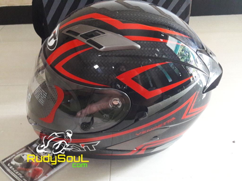 Rudysoul membeli helm ini dari salah satu Toko Helm yang ada di Blitar, kayete Vendetta 2 warna merah carbon pesanan konsumen ini sebenarnya rudysoul akan belikan di toko online tetapi karena ada ongkos kirim jatuhnya lebih mahal dibandingkan dengan harga helm yang ada dijual di Blitar.