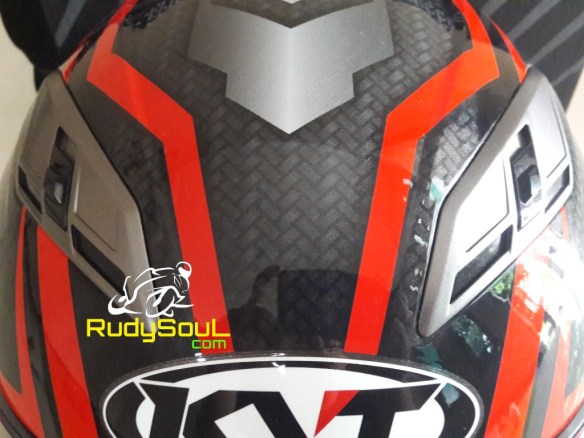 Setelah box terbuka langsung ambil tas helm KYT Vendetta 2 warna merah karbon, rudysoul amati ternyata helm kayete vendeta2 ini motifnya cukup keren dan asik, detail karbonnya lumayan terlihat jelas menjadikan tampilan cukup keren.