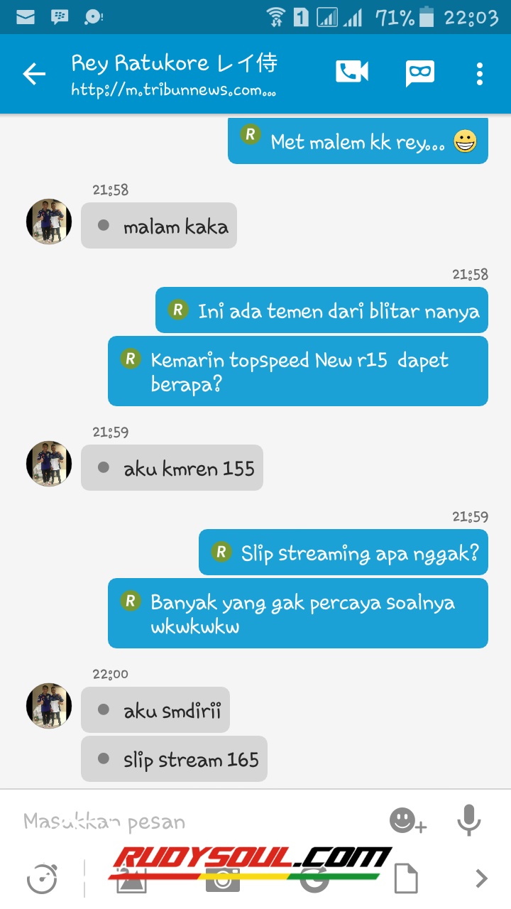 Sob,susah memang menghadapi para fansboy merk yang benar-benar kaku wataknya,dikasi informasi maunya minta lebih,seperti contoh diartikel sebelumbya yang rudysoul tulis soal top speed all new R15 oleh Rey Ratukore yang tembus 153km/j lebih,banyak yang enggak percaya,minta bukti video,suruh tes ulang dipakein kamera biar bisa ngerekam top speed..ya sudik tah…emange koe sopo hehehe.
