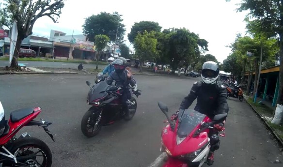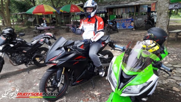 11 orang teman rudysoul semuanya menggunakan motor sport mulai 150cc sampai 1000cc, ada CB150R,Byson,CBR150R,Vixion,R25,CBR250RR dan BMW1000RR. Kebetulan sekali ada teman yang bawa CBR250RR kesempatan nih karena rudysoul belum pernah test ride motor ini, di beberapa kali kesempatan untuk test Ride cbr250rr rudysoul selalu melewatkannya karena sesuatu hal yang tak terduga.