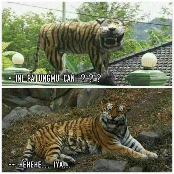Patung macan yang terlihat lucu Ini akhirnya dirobohkan oleh pihak Koramil setelah foto-fotonya tersebar di dunia maya.