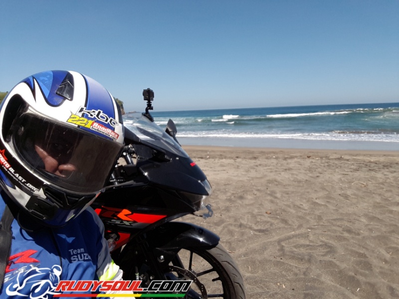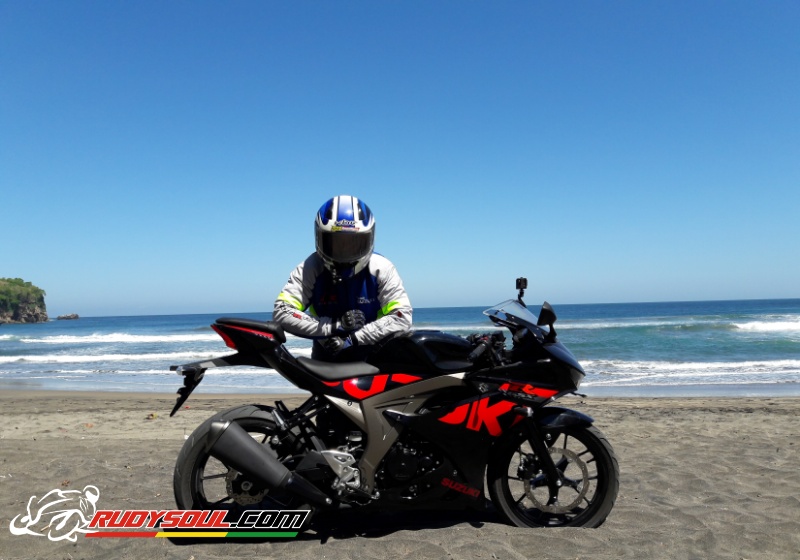 Saat digunakan perjalanan berangkat maupun balik dari pantai GSX-R150 sangat asyik, motor motor benar-benar yahut mulai dari rem,shock depan dan powernya pas banget,tapi ada sesikit kekurangan GSX-R150 ini pada bagian ban IRC Exato yang RudySouL rasakan sedikit kurang menggigit dibandingkan dengan IRC Road Winner.