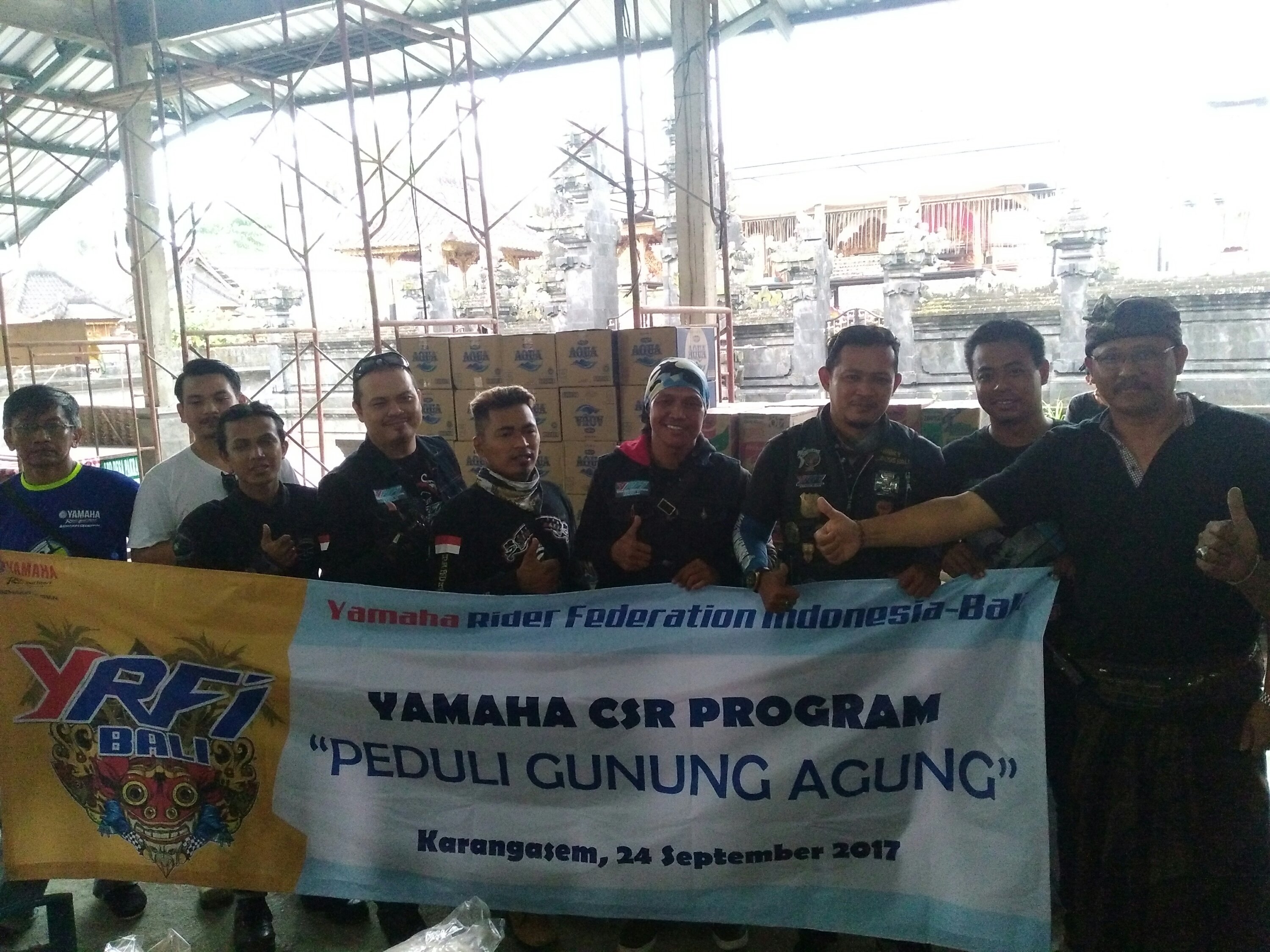 Yamaha turut menyalurkan bantuan untuk para pengungsi yang menghindari ancaman letusan Gunung Agung di Karangasem, Bali. Bantuan diberikan oleh PT Yamaha Indonesia Motor Manufacturing (YIMM) bekerjasama dengan YRFI (Yamaha Riders Federation Indonesia) dalam program “Peduli Gunung Agung”.