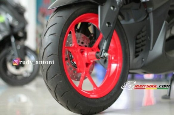 Sob,yamaha Aerox 155 dari sononya sudah terlihat keren tapi sebagai manusia masih ada saja yang kurang ,belum puas dengan tampilan keren standart Aerox 155 salah satu konsumen yang ada di blitar meminta secara khusus kepada diler untuk memberikan sedikit sentuhan pada Aerox 155 yang dibelinya.