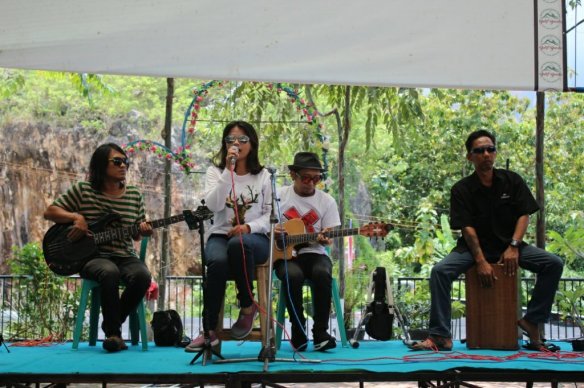 Usai bermain game semuanya beristirahat dan makan siang diiringi oleh musik yang dimainkan oleh band lokal yang memang sudah disiapkan oleh pengelola Bukit Bunda setiap akhir pekan.