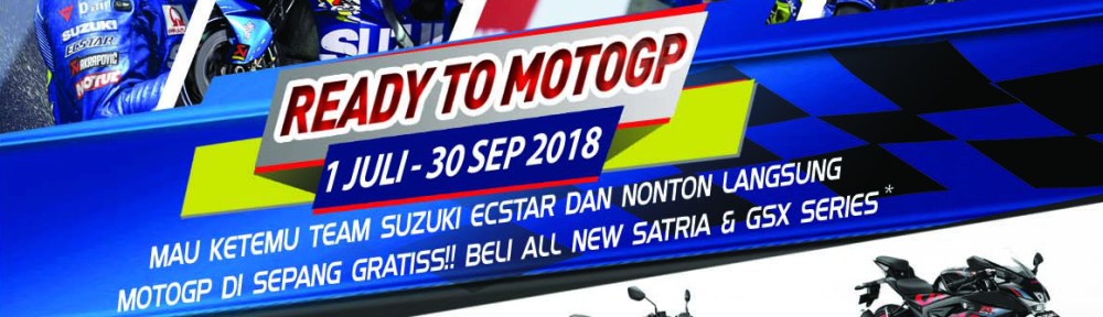 Sob,Sebagai agenda rutin di tahun ke-3, PT. Suzuki Indomobil Sales (SIS) kembali menggelar program menarik bagi konsumen baru, bertajuk Suzuki Ready To MotoGP 2018. Program yang berlangsung dari 1 Juli hingga 30 September 2018 ini memberikan kesempatan bagi puluhan orang konsumen baru Suzuki yang paling beruntung untuk dapat menonton serunya balap MotoGP secara langsung di Sepang International Circuit, Malaysia pada bulan November 2018 nanti.