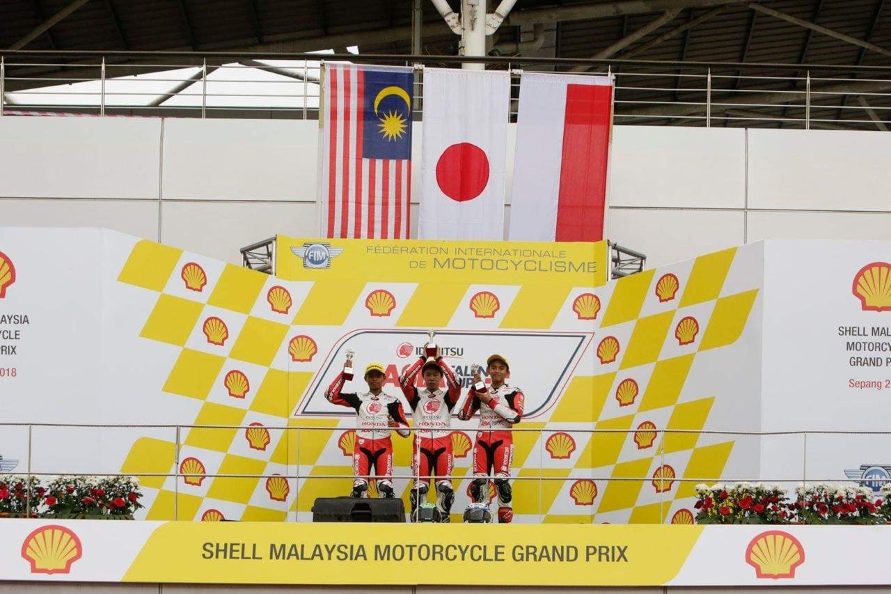 Sob,dua pebalap muda binaan PT Astra Honda Motor (AHM) berhasil mengibarkan bendera Merah Putih dengan finish posisi ketiga pada balap pertama yang dipersembahkan oleh Mario Suryo Aji dan Lucky Hendriansya pada balap kedua putaran terakhir ajang balap Asia Talent Cup (ATC) di sirkuit Sepang, Malaysia.