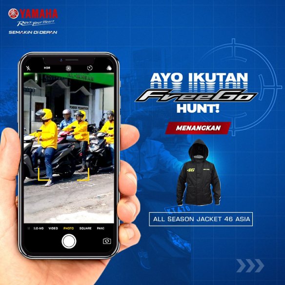 Sob,sampean mau jaket All Season VR46 asia gratis? PT Yamaha Indonesia Motor Manufacturing kembali mengadakan kompetisi menarik melalui aktifitas Yamaha FreeGo Hunt.