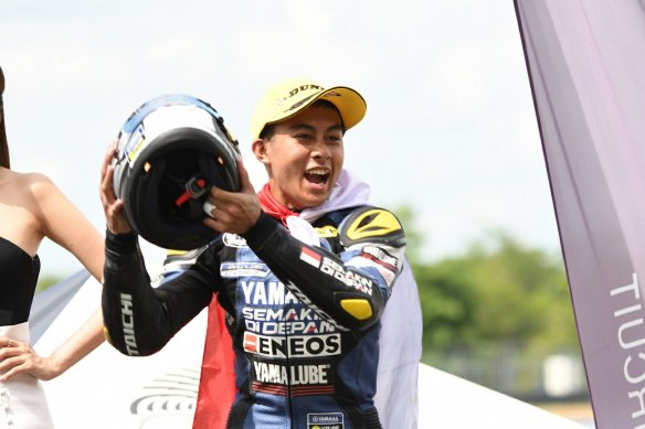 “Ini race yang sulit bagi saya. Saya berusaha ada di top group walaupun ada tekanan dari pembalap-pembalap lain. Cuaca pada race ke-2 ini cukup panas, sehingga di pertengahan lap ada kendala pada temperature mesin. Pastinya harus bisa menjaga agar dapat bertarung pada 2-3 lap terakhir. Pada tikungan terakhir, saya berusaha untuk berani masuk meskipun itu menurut saya tidak mungkin. Saya ingin podium. Alhamdulillah, saya dapat podium ke-3. Terimakasih untuk tim atas kerja keras selama ini dan keluarga serta kerabat yang mendoakan saya. Saya akan berusaha baik di seri-seri berikutnya dan akan memperbaiki klasemen poin,” terang Faeroz yang pernah menjalani VR46 Master Camp di Tavullia, Italia dan sementara ini ada di urutan ke-8 dalam klasemen AP250 (56 poin).