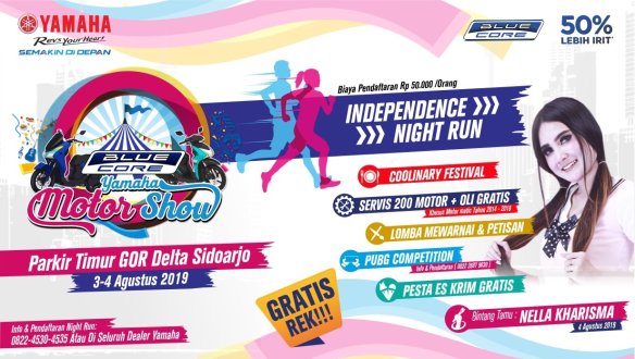 akhir pekan bersama keluarga dengan menghadiri Blue Core Yamaha Motor Show (BYMS) di Pulau Belitung dan Kota Sidoarjo pada tanggal 3 – 4 Agustus 2019 mendatang.