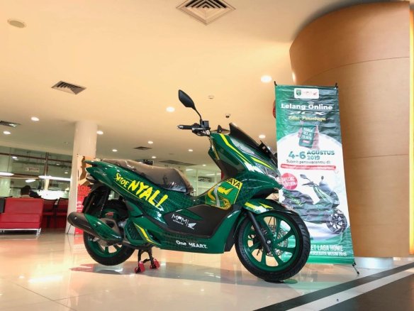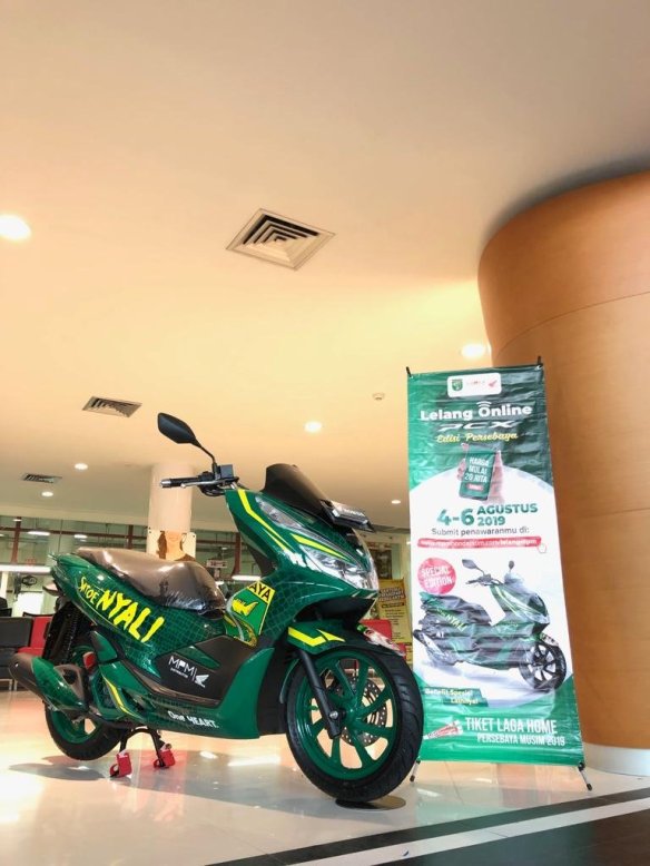 Sob, Kabar gembira bagi pecinta Honda dan juga penggemar klub sepak bola Surabaya atau persebaya, bahwasanya PT. Mitra Pinasthika Mulia ( MPM ) distributor sepeda motor honda wilayah Jatim dan NTT kembali menghadirkan 1( satu) unit sepeda motor modif spesial edisi persebaya. Motor modif spesial persebaya ini akan dilelang mulai tanggal 04 – 06 Agustus 2019.