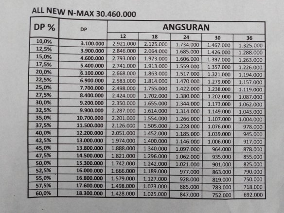 Berikut adalah gambar angsuran All New NMax untuk wilayah Kediri- Madiun.