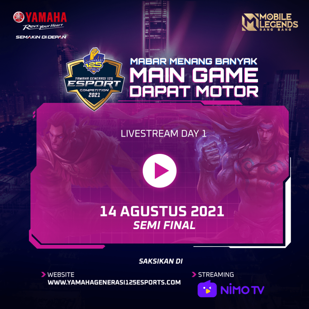 Babak Semifinal akan dilakukan pada hari Sabtu tanggal 14 Agustus 2021, pemenang pada babak ini akan melanjutkan babak Grand Final hari Minggu, 15 Agustus 2021. Babak Semifinal dan Grand Final akan ditayangkan secara Live Streaming melalui website Yamaha Generasi 125 (www.yamahagenerasi125esports.com/live-streaming/ ) dan di Channel Nimo TV Yamaha (https://www.nimo.tv/live/788476323) mulai pukul 13.00 WIB. Semakin ramai karena akan di re-streamer oleh beberapa player EVOS E-Sports di Channel NIMO TV & YouTube mereka.