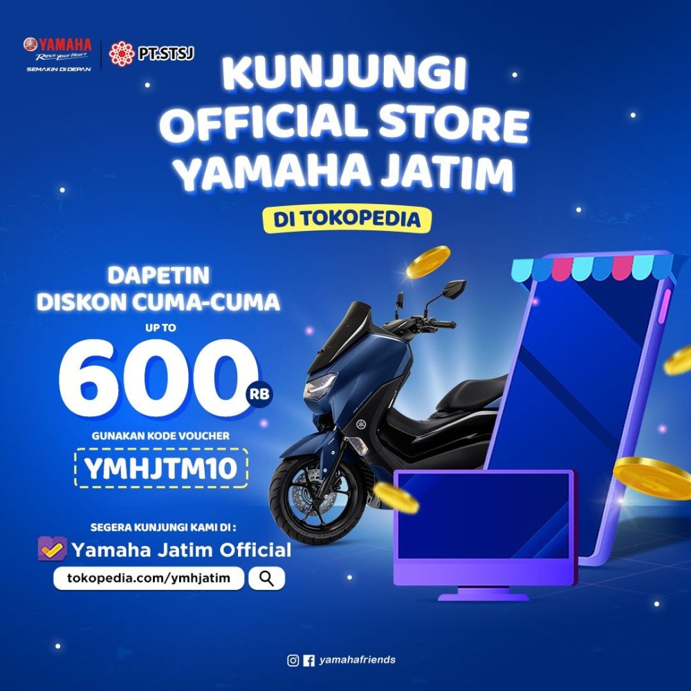 Keseriusan Yamaha Jatim kali ini dibuktikan dengan memberikan kemudahan terhadap pelanggan setia Yamaha, kali ini kalian bisa langsung mengunjungi store Yamaha Jatim Official melalui Tokopedia.