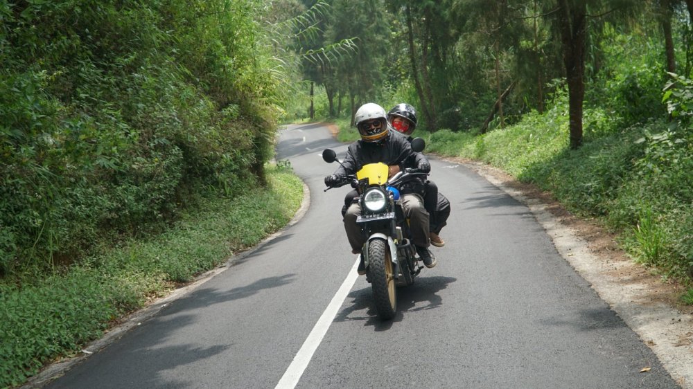 ”Saya kan bikin motor XSR 155 Overlander untuk dipakai riding juga. Sebelumnya saya sudah pernah menggunakannya ke area kawah, Tangkuban Perahu dan pegunungan lainnya di Bandung. Lalu sekarang dibuat trip boncengan dengan istri, ini pertama kalinya kami lakukan sehingga memberikan experience baru bagi kami. Jadi mencari journey nya, apa saja yang bisa didapatkan dan dirasakan dalam perjalanan ini, istimewanya dengan XSR 155,” papar Chandra.