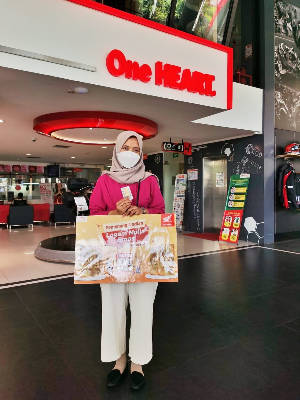 “ Saya tidak menyangka akan mendapatkan hadiah 100 gr emas dari undian Hujan 1 Kg Emas. Motor Honda memang menjadi motor favorite keluarga kami karena teknologi motor Honda selalu baru dan juga irit.” Kata Lita.