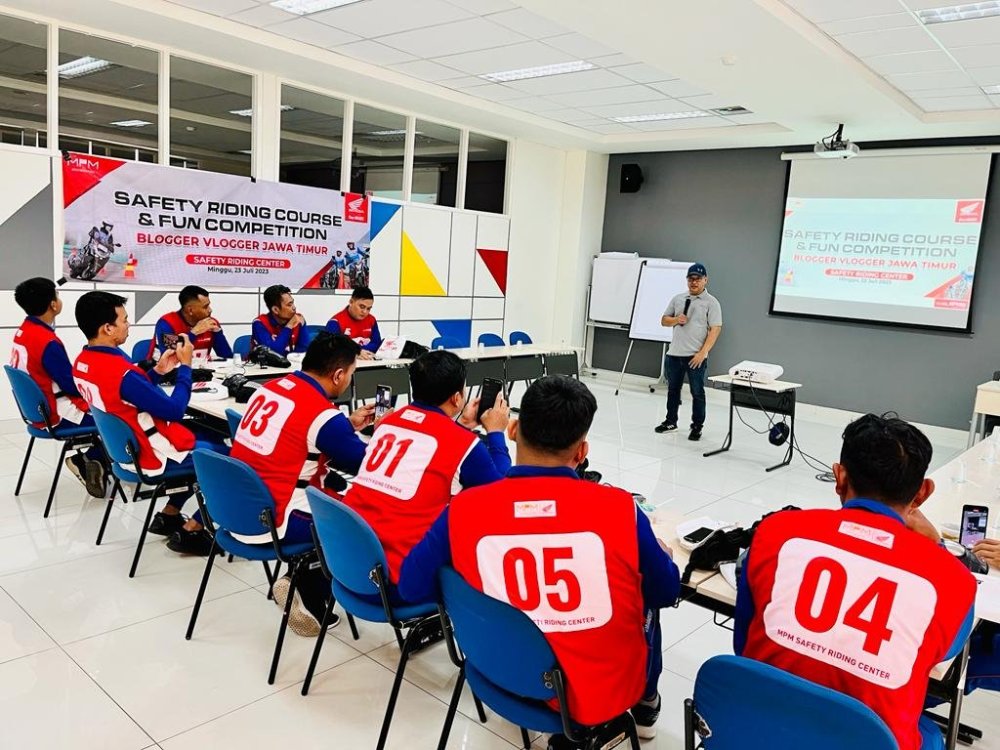 Sebelum praktek dilapangan semua peserta diberikan materi safety riding yang berfokus pada knowladge, skill dan attitude berkendara.