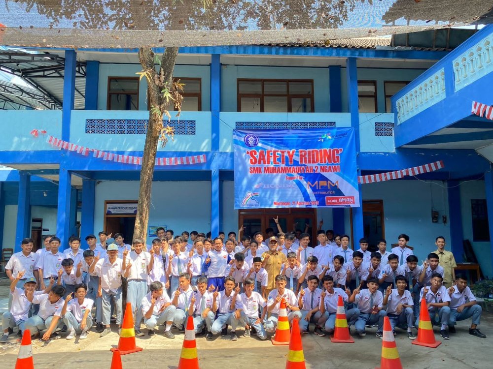Kesempatan ini dimanfaatkan oleh SMK Muhammadiyah 2 Ngawi untuk memberikan edukasi keselamatan berkendara kepada 50 pelajar. Bersama dengan Instruktur safety riding MPM Honda Jatim dan jaringan dealer MPM Motor Ngawi, para peserta ini mengikuti kegiatan edukasi safety riding dengan tema Generasi Cari_Aman.