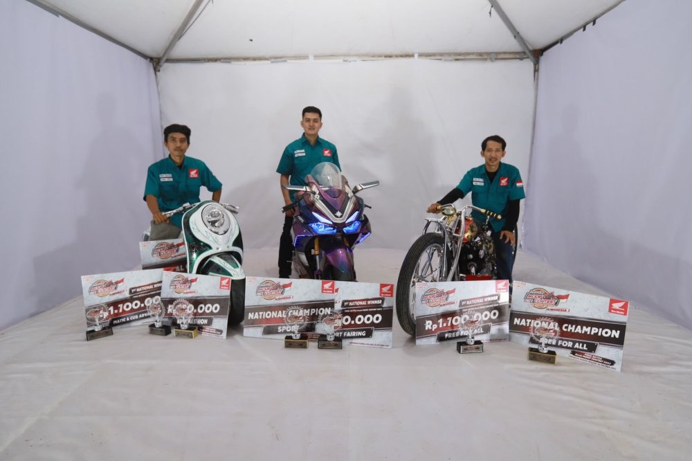 Pada final battle HMC ini, predikat Juara Nasional diberikan kepada Saharudin untuk kategori Matic & Cub yang memodifikasi motor Honda Scoopy. Selanjutnya, Iksan Aditya Mulyo berhasil meraih gelar Juara Nasional kategori Sport dengan karyanya bersama CBR250. Terakhir, Andri Hendrawan dengan kreasinya Honda CB175 Twin berhasil mengantarkannya sebagai pemenang Juara Nasional dari kategori FFA (Free for All). Para pemenang Juara Nasional HMC 2023 ini berhak mendapatkan hadiah berupa uang pembinaan dan berkesempatan menjadi modifikator dalam Honda Dream Ride Project yang didampingi langsung oleh mentor modifikator ulung Indonesia.