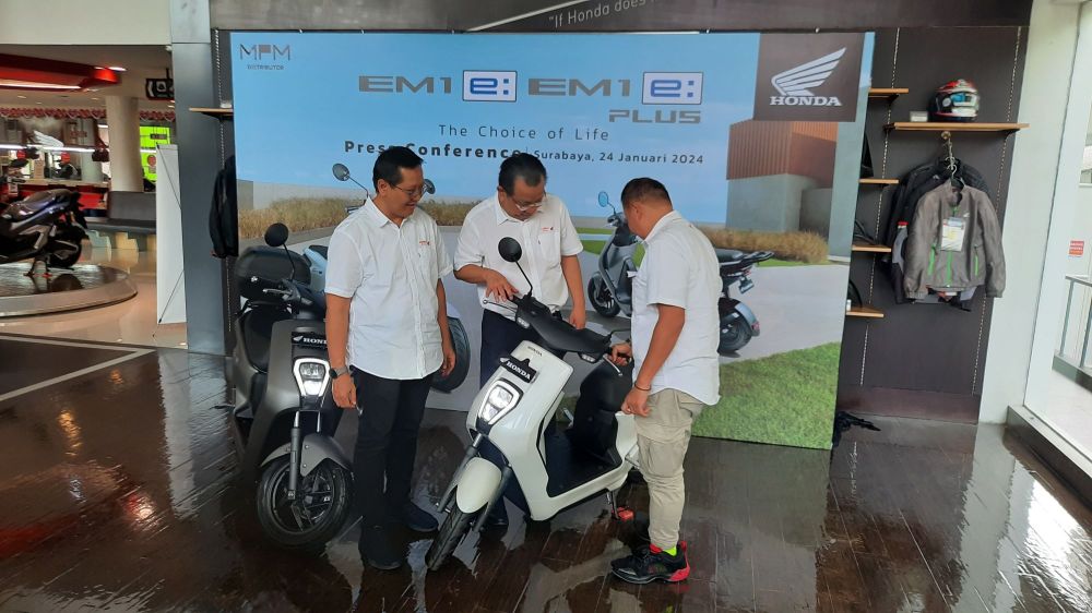 “Hari ini, resmi kami perkenalkan Honda EM1 e: dan Honda EM1 e: PLUS moda transportasi ramah lingkungan yang dinantikan oleh masyakarat Jawa Timur. Memasuki era elektrifikasi, dengan kehadiran Honda EM1 e: sebagai pilihan kendaraan elektrifikasi roda dua yang tepat untuk kehidupan sehari-hari.” Kata Suwito M, Presiden Direktur MPM Honda Jatim.
